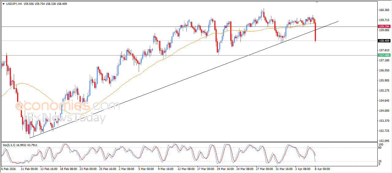 (USDJPY) koki jyrkän laskun viimeaikaisessa päivänsisäisessä kaupankäynnissä parin rikkoutuessa EMA50:n alapuolelle. Tämä altisti sen lisääntyneelle negatiiviselle paineelle, joka voimistui entisestään parin rikkouduttua merkittävän lyhytaikaisen nousevan trendiviivan.