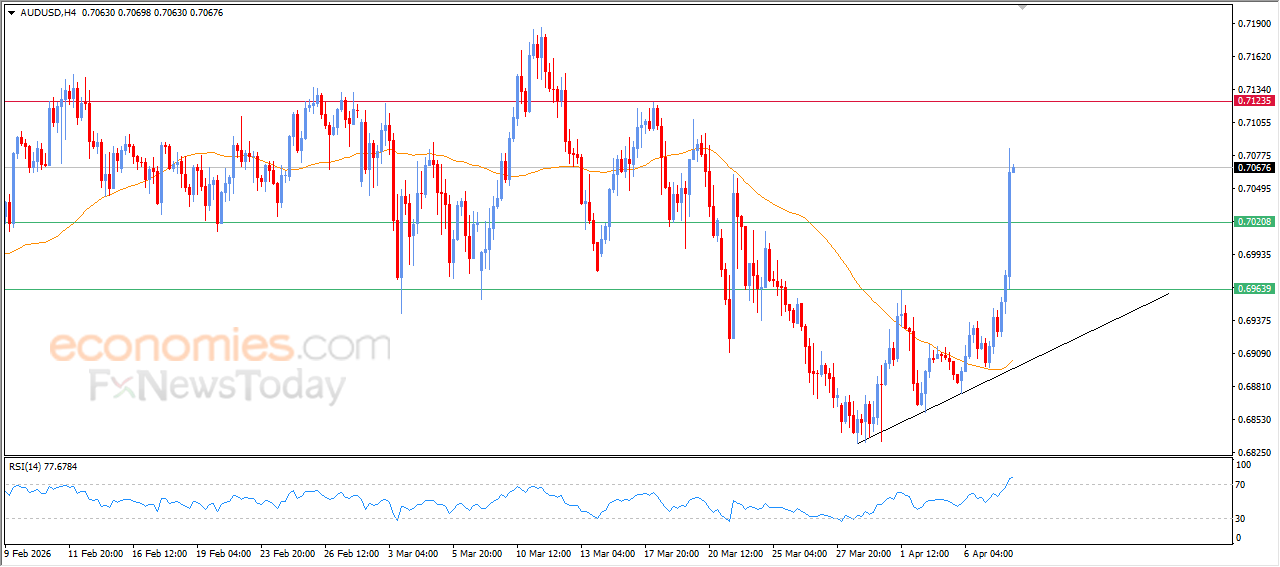 (AUDUSD) koki jyrkän nousun viimeaikaisessa päivänsisäisessä kaupankäynnissä, ja korjaava nousutrendi jatkaa parin liikkeen hallitsemista lyhyellä aikavälillä. Tämä tapahtuu samaan aikaan, kun pari hyötyy positiivisesta dynaamisesta tuesta, jota edustaa EMA50:n yläpuolella oleva kaupankäynti, sekä suhteellisen vahvuuden indikaattoreiden positiivisista signaaleista huolimatta siitä, että se on saavuttanut voimakkaasti yliostetut tasot, mikä viittaa parin ympärillä olevaan vahvaan nousumomenttiin.