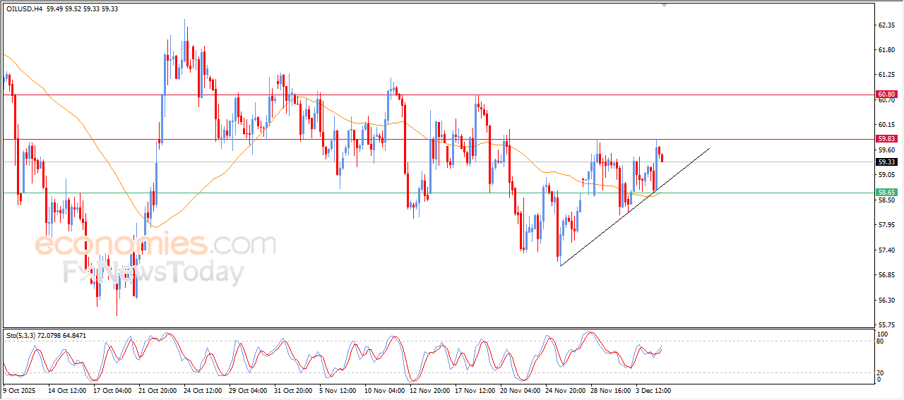 Raakaöljyn hinta laski viimeaikaisessa päivänsisäisessä kaupankäynnissä avainvastustason vakaututtua 59,85 dollariin, joka edustaa edellisessä analyysissämme odotettua tavoitetta. Öljyn hinta alkoi kerätä viimeisiä voittojaan yrittäessään palauttaa tarvittavan nousumomentin tämän vastuksen uudelleen rikkomiseksi, erityisesti kaupankäynnin jatkuessa lyhyellä aikavälillä pienen nousutrendin linjan rinnalla.