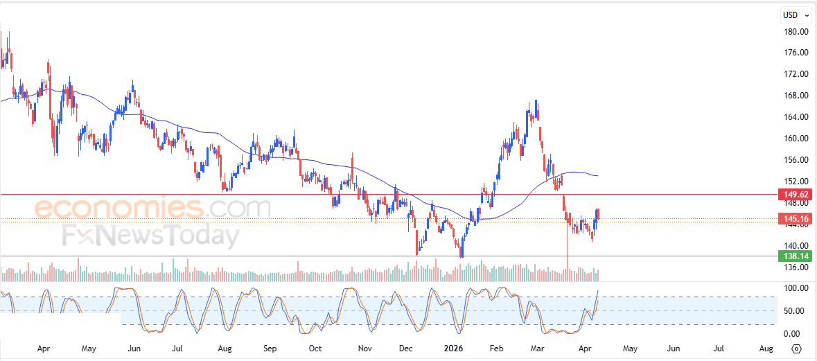 Siksi odotamme osakekurssin laskevan tulevien kaupankäyntisessioiden aikana niin kauan kuin vastustaso 149,60 dollarissa pysyy ennallaan ja tähtäävän keskeiseen tukitasoon 138,20 dollarissa.