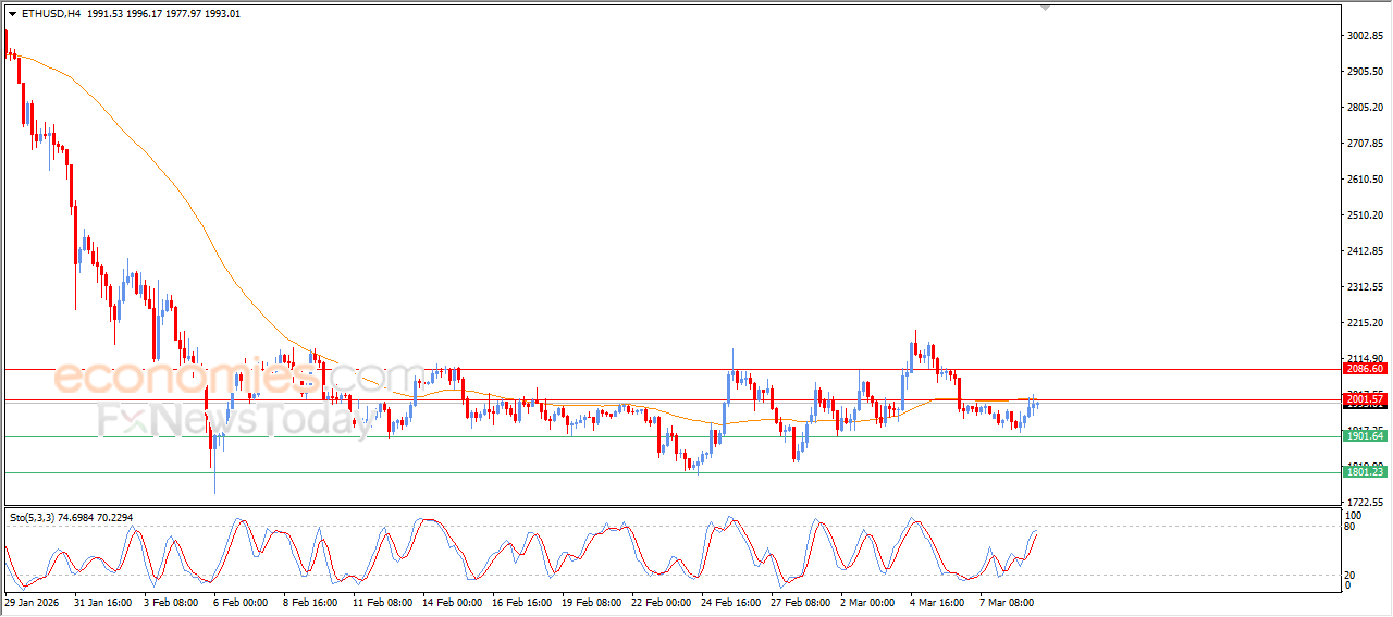 (ETHUSD):n hinta nousi viimeisimmässä päivänsisäisessä kaupankäynnissä ennen EMA50:n vastustason saavuttamista, mikä saattaa aiheuttaa negatiivista painetta hintaan päivänsisäisesti. Suhteellisen vahvuuden indikaattorit saattavat myös johtaa liioiteltuihin yliostettuihin tasoihin, mikä lisää voittojen kotiuttamisen tai tilapäisen laskun todennäköisyyttä. Laskutrendi pysyy lyhyellä aikavälillä hallitsevana, mikä saattaa rajoittaa nousun jatkumista, ellei tätä vastustasoa ylitetä ja pysytä sen yläpuolella.